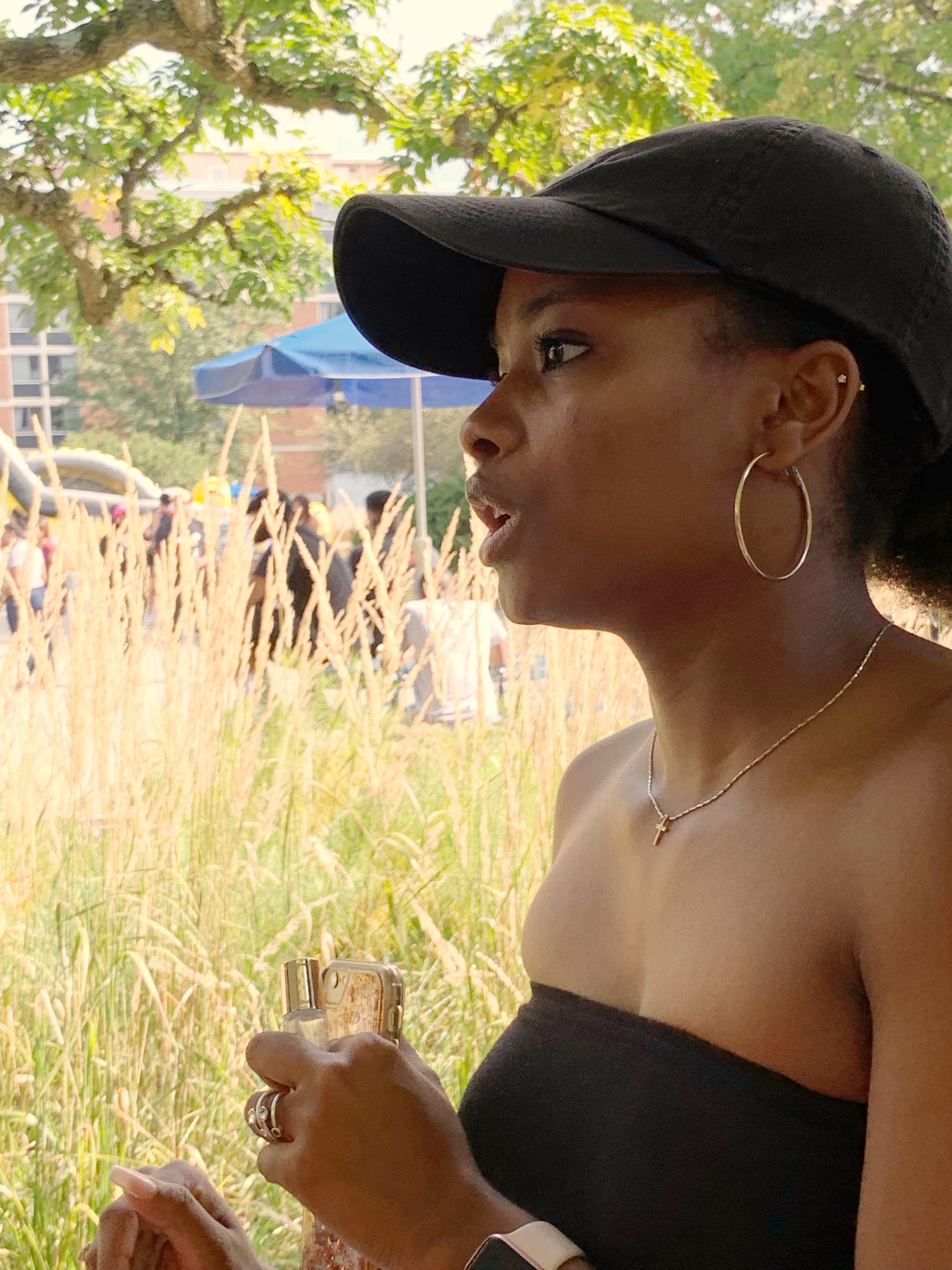 Thalia is a senior, majoring in Bio-behavioral health, hailing from Queens, New York. She says that it’s the first time at one of the NAACP block parties and she is glad she didn’t miss it. She says, “It’s really nice to see the black and brown community at Penn State come together. I know it’s hot and everything, but it’s senior year. You gotta go out and do stuff because you never know if you’ll meet someone cool. Like today, I met you.”